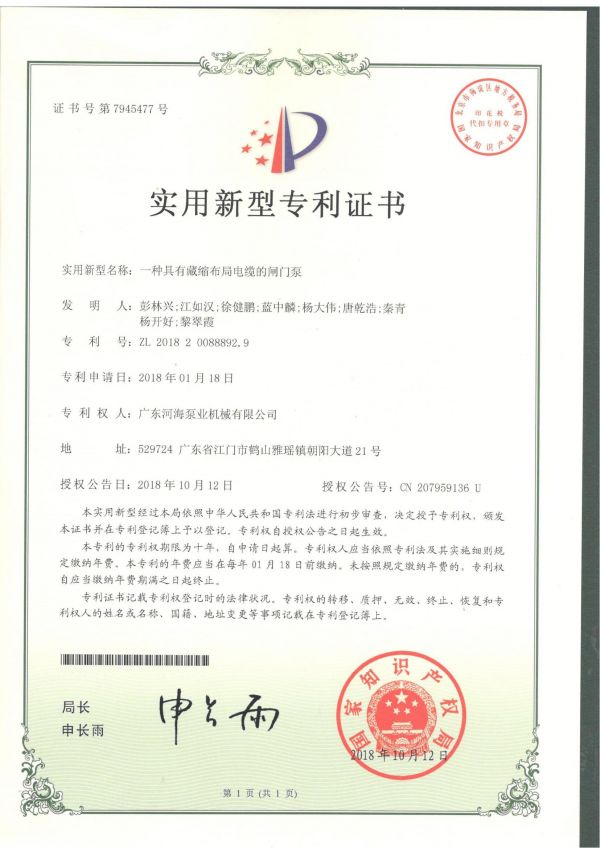 一種具備藏縮規劃電纜的閘門泵