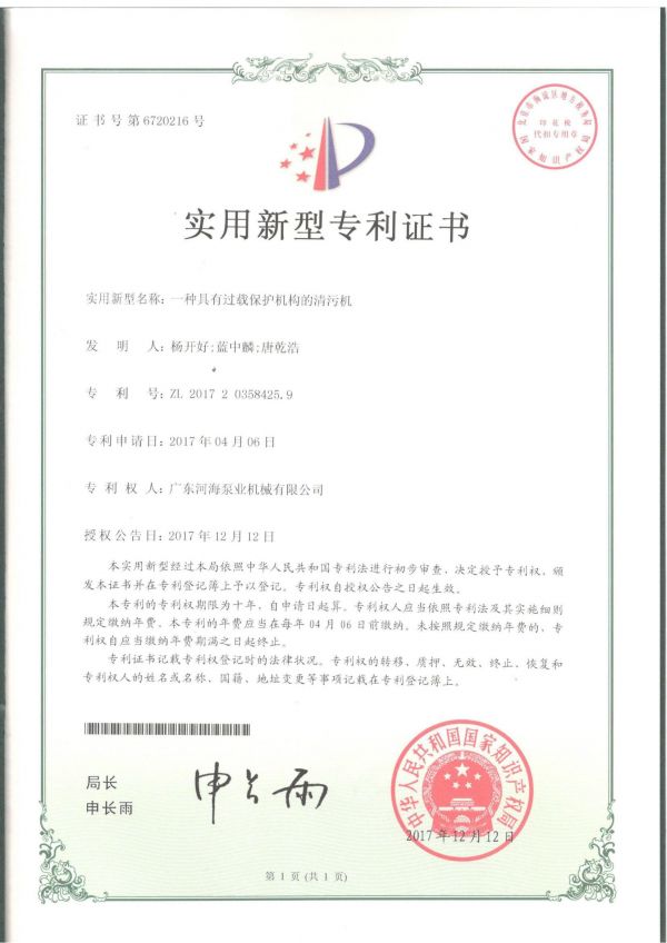 適用新型專利證書