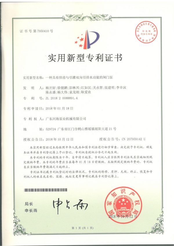 一種具備排澇與引灌雙向引排水功效的閘門泵