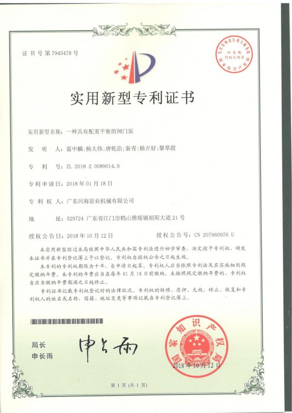 一種具備配重均衡的閘門泵